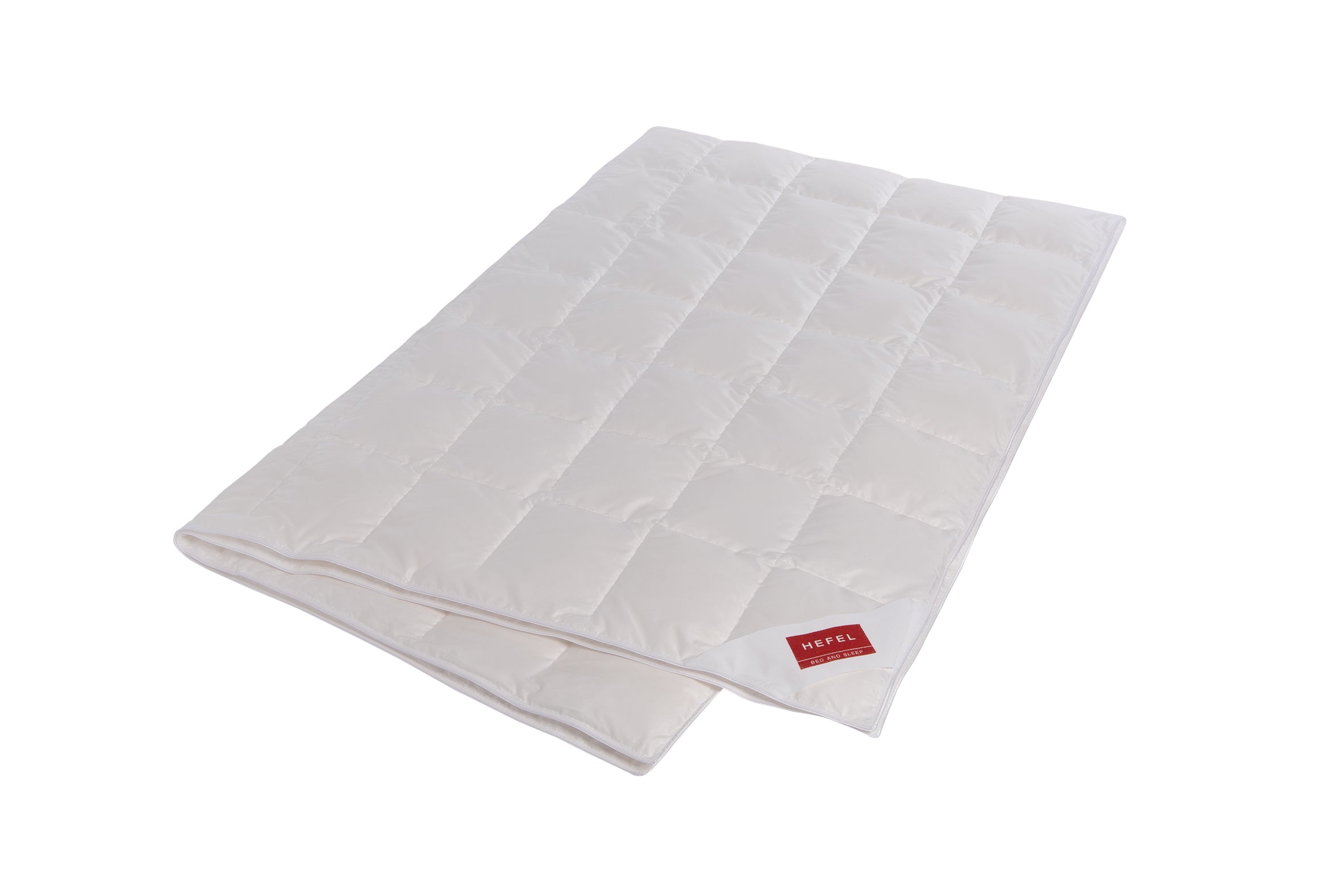 Die edle Luxusbettdecke HEFEL Platinum Down besticht durch eine besonders leichte  Gänsedaunenfüllung (Klasse 1) mit einem geschmeidigen Baumwoll-Batist mit Aloe Vera Veredelung.