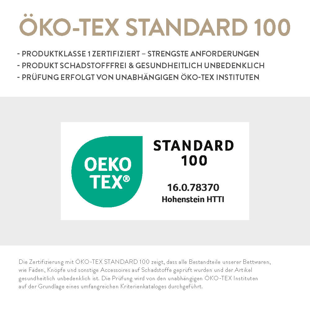 Zertifikate: Down Pass (dem Tierwohl zuliebe), NOMITE, Oeko-Tex, Made in Green zertifiziert